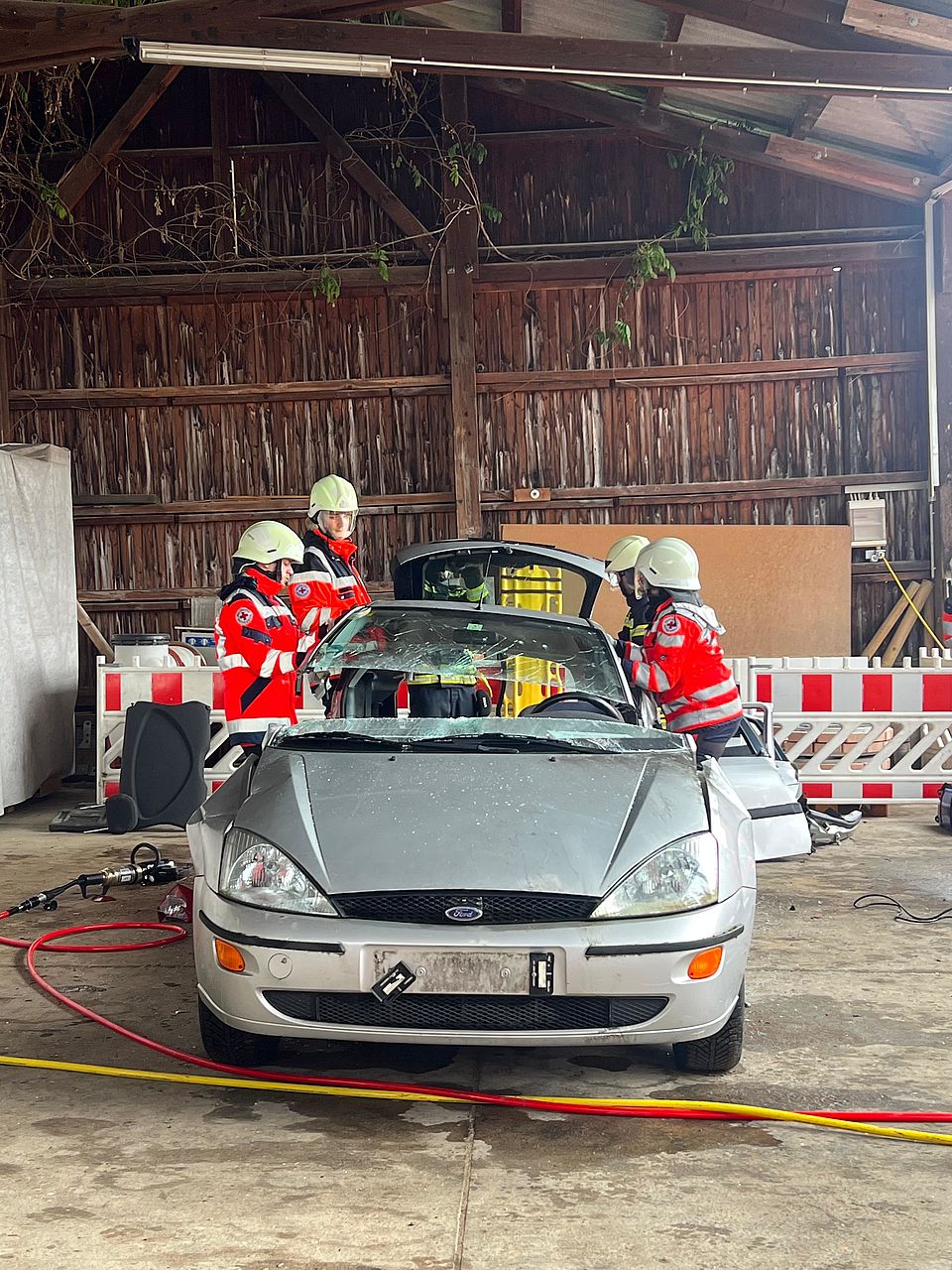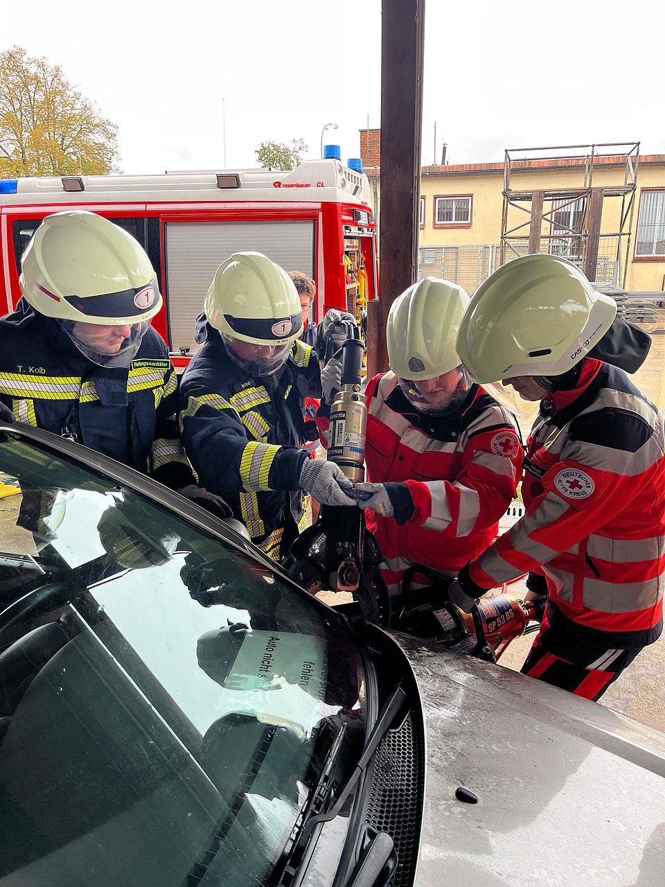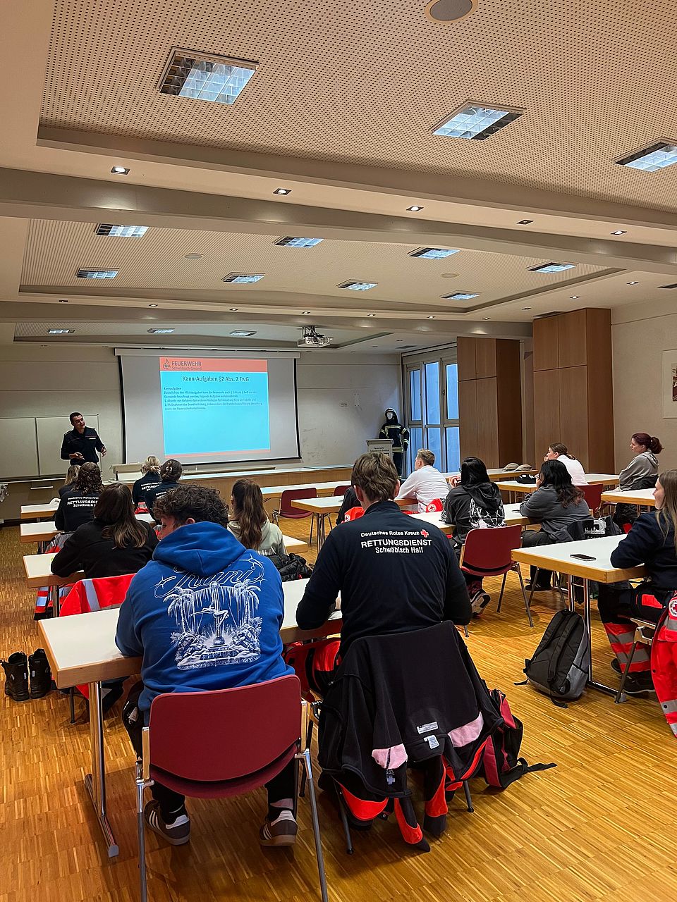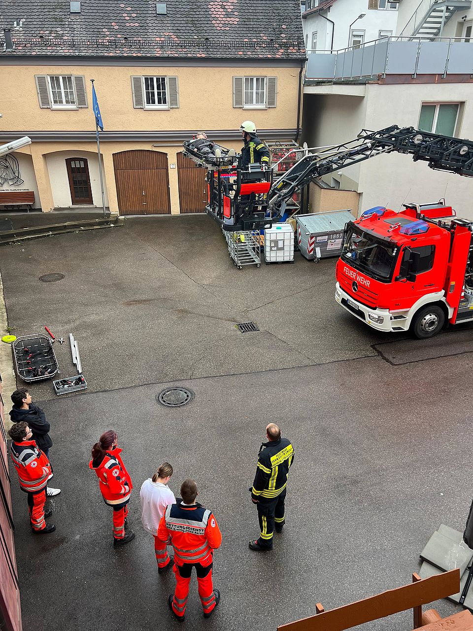 Wie Rettungsdienst und Feuerwehr im Ernstfall Hand in Hand arbeiten, erlebte die Klasse N 24E-21 der DRK-Landesschule Baden-Württemberg bei einem Übungstag in Schwäbisch Gmünd.