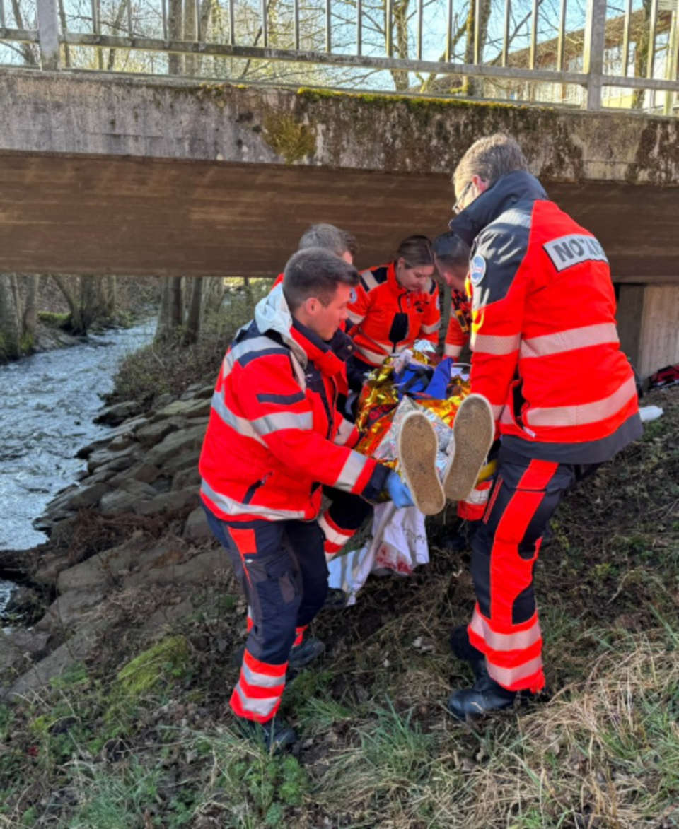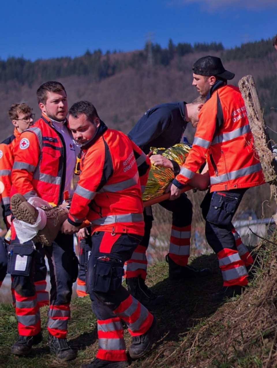 - Sturz aus Höhe mit offenem Abdomen, HWS-Verletzung und Hypothermie