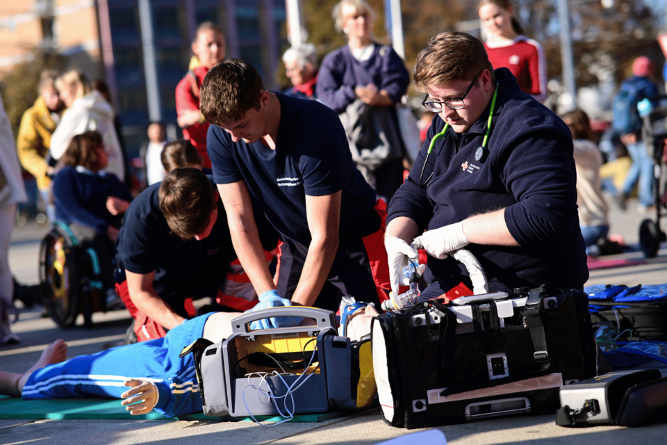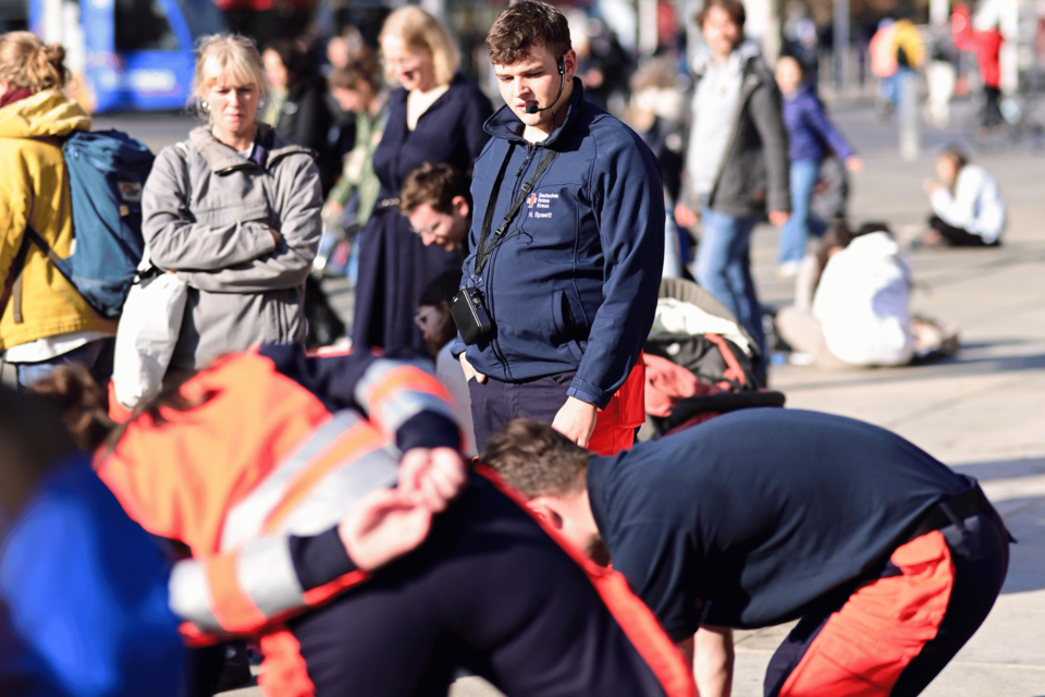 Am Internationalen Tag der Wiederbelebung („Restart a Heart Day“) 2025 war die Freiburger Klasse der DRK-Landesschule Baden-Württemberg gemeinsam mit dem Josefs-Krankenhaus Freiburg auf dem Platz der Alten Synagoge aktiv.